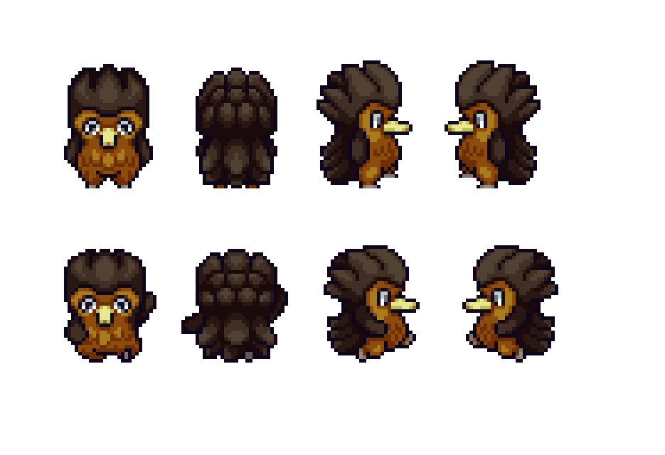 Created and animated ~200 in game overworld character sprites and mon sprites based on design parameters.